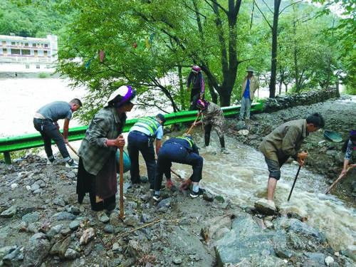 “西河橋、西河橋,水位退了沒有?有沒有被困人員和被困車輛?群眾撤離得怎樣?”縣防汛指揮部徹夜通明,對講機里隨時互通情況。丹巴縣黨政干部微信交流群——“美人谷學(xué)習(xí)園地”里頻繁地更新著各級各部門一線搶險的信息和圖片。老百姓說,正是縣委、縣政府大樓徹夜明亮的燈光和穿梭忙碌的身影,讓全縣的抗洪救災(zāi)有條不紊地進行。