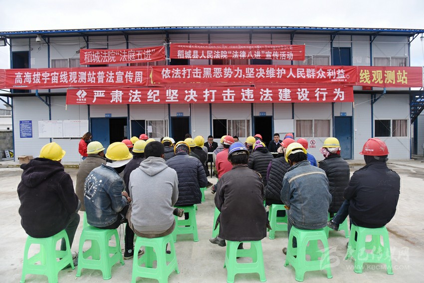 昨(31)日,稻城縣人民法院法官來(lái)到海子山海拔4410米處的高海拔宇宙線(xiàn)觀(guān)測(cè)站開(kāi)展法制宣講活動(dòng)。此次活動(dòng)重點(diǎn)向觀(guān)測(cè)站內(nèi)工作人員宣傳掃黑除惡專(zhuān)項(xiàng)斗爭(zhēng)、環(huán)境資源保護(hù)、安全生產(chǎn)以及民族團(tuán)結(jié)進(jìn)步四個(gè)方面內(nèi)容。
