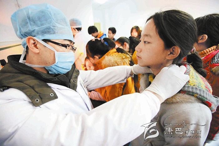 醫(yī)療隊正在為學(xué)生體檢。