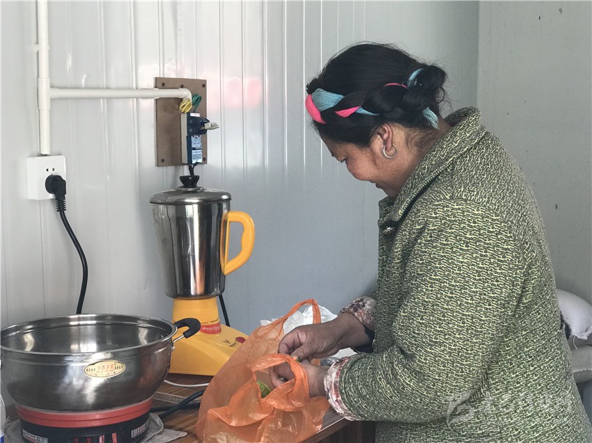 仁青卓瑪一家共四口人,分得農(nóng)戶四人房。“我沒(méi)想過(guò)板房條件可以這么好,有電有水,還有單獨(dú)干凈的廁所,對(duì)面就是洗澡的地方,在有些地方甚至比以前住的房屋更便利?!彼呎f(shuō)邊用抹布擦著灶臺(tái)上的油漬,“這里也是家啊,還是要收拾得干干凈凈的,新家新氣象嘛?!敝钡焦P者離開(kāi),卓瑪還在自家的板房里忙碌著。