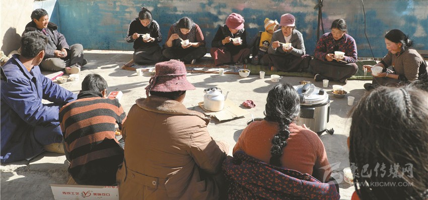 “請(qǐng)注意腳下哈,不要絆倒了喲!你們把這趟搬了就過(guò)來(lái)吃午飯,等吃完飯后再搬。”筆者在金沙鄉(xiāng)八吉村采訪時(shí),親眼目睹了十幾個(gè)忙碌的身影穿梭在一頂帳篷與院壩之間。一經(jīng)打聽(tīng),原來(lái)是村民扎西多吉的親戚和鄰居在幫他搬運(yùn)柴火。