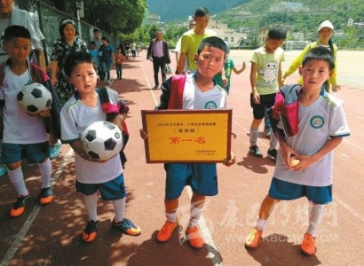 山里娃娃吃得苦、受得累、體能好、跑得快。通過集訓(xùn)體能、技藝和賽場對抗能力,球員在短時(shí)間里球技突飛猛進(jìn),接連取得優(yōu)異戰(zhàn)績:去年6月,參加“2018年瀘定縣中小學(xué)生足球選拔賽”獲得了低段組第一名;去年7月,參加“甘孜州第三屆青少年校園足球聯(lián)賽”獲得了甘孜州東路片區(qū)足球賽低段組第一名。