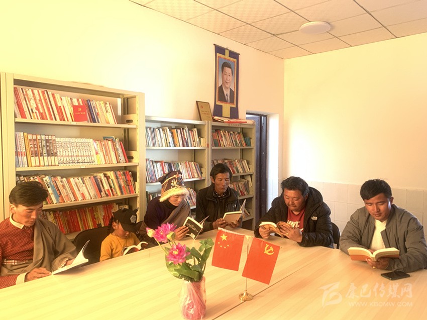 “平時(shí)只要有空,我們就到這里來聚會,看看書、聊聊天,有時(shí)村里會組織大家集中收看宣傳黨委政府政策的宣傳片,讓我們能及時(shí)了解國家方針政策?!?月13日午飯后,色達(dá)縣大則鄉(xiāng)厚門村的文化活動室,和往常一樣,又陸陸續(xù)續(xù)迎來三三兩兩的村民們。一樓的圖書室,幾位村民正在安靜地看書,有漢語的,也有藏語的,他們身后兩面的書架上,收藏了上萬本各類書籍,其中藏語書籍占了一半以上,還有一些光碟,都是歷次中央、省、州重大會議的宣講內(nèi)容。在二樓的會客室,49歲的村民擁巴和鄉(xiāng)親們正熱烈地聊著今年脫貧攻堅(jiān)的形勢。