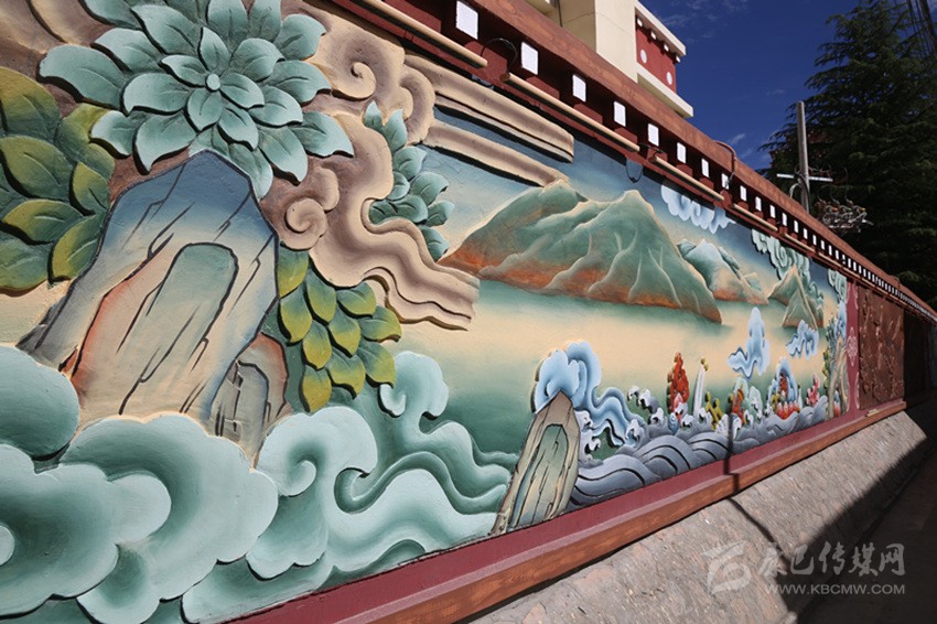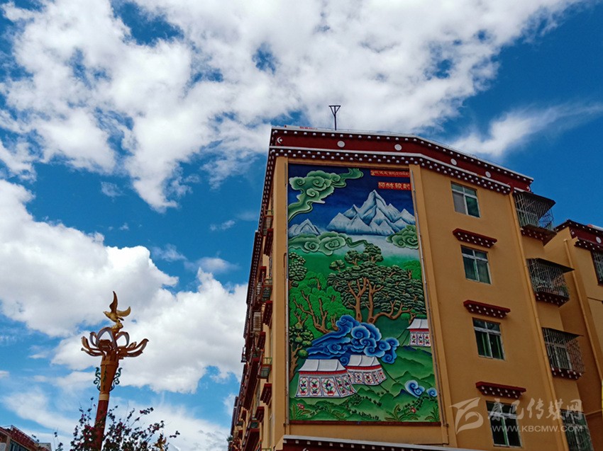 當(dāng)筆者一行走在巴塘縣城,墻體繪畫上“巴塘八景”躍然于上,“巴山積雪”“柳林較射”“桃園賞花”“板橋垂釣”“古桑抱石”“溫泉沐浴”“暖石回陽”“老柳夾槐”色彩豐富、構(gòu)思精巧,平淡無奇的墻面因為一幅幅鮮活的繪畫變得生活,一面墻一幅畫一個故事。街頭巷尾,十字路口的“大鵬蓮花燈”“九眼天珠燈”“走馬燈”高高懸掛展示巴塘風(fēng)貌。以“茶馬古道”為主題打造的“最美古鎮(zhèn)”,悠悠古韻講巴塘故事,古色古香顯巴塘韻味……