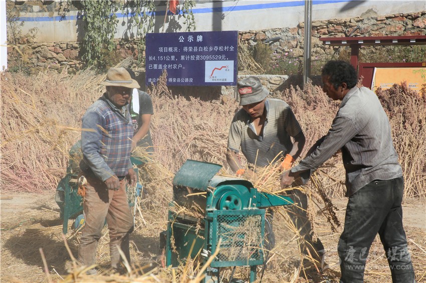 金秋的陽光熾熱溫暖,得榮縣白松鎮(zhèn)奪松村一片祥和安寧。11月10日,村民們正在村活動(dòng)室的院壩里脫粒藜麥,豐收的喜悅寫在忙碌的村民的臉上?!按蠹壹佑透?,把藜麥交給公司,立馬可以拿到現(xiàn)錢。”奪松村委會(huì)副主任四郎都遷高興地說,盤點(diǎn)收成,今年又是一個(gè)豐收年。