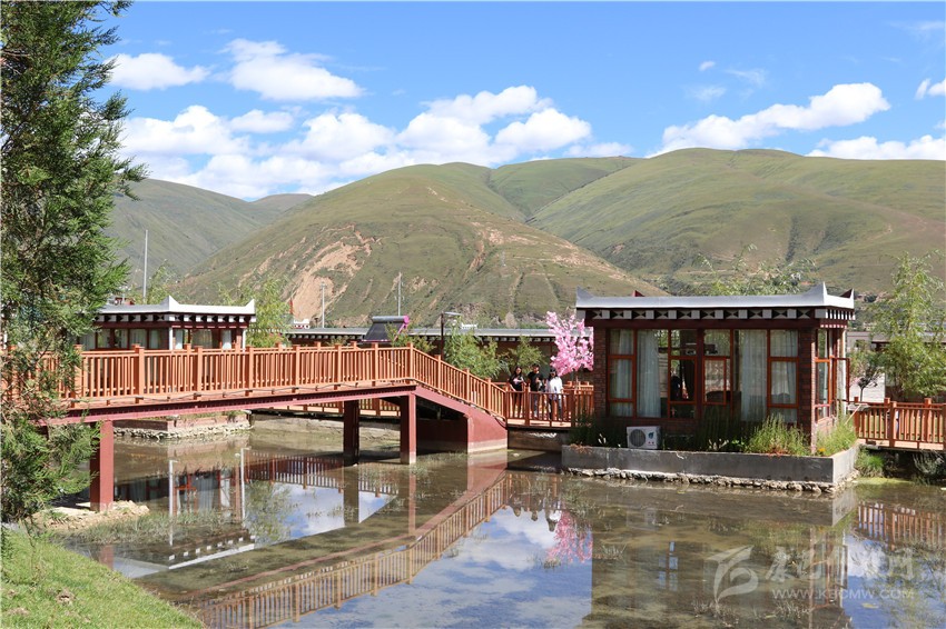 走進(jìn)山莊,一排排仿道孚民居外觀的房子整齊排列掩映在柳樹間,四面落地玻璃窗的設(shè)計(jì)讓陽(yáng)光溫暖整個(gè)房間,潺潺的小溪縈繞其間,不遠(yuǎn)處蒼措嘎布海子的蘆葦叢在微風(fēng)中輕輕擺動(dòng),幾只野鴨子在水上嬉戲,特色民居增加了民族韻味,漫步木制棧道,眼前呈現(xiàn)出美麗鄉(xiāng)村的畫卷。
