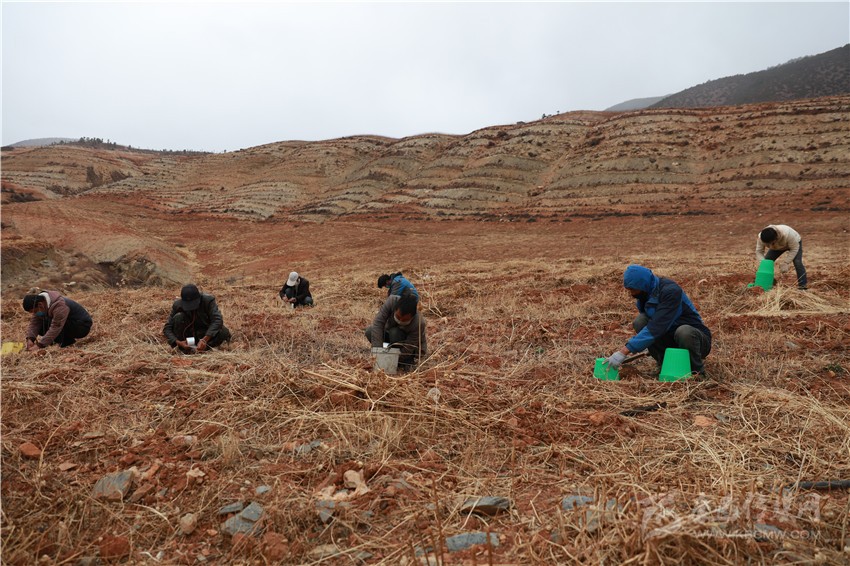 鄉(xiāng)城水果產(chǎn)業(yè)園區(qū)聘請(qǐng)村民為果樹(shù)松土澆水。