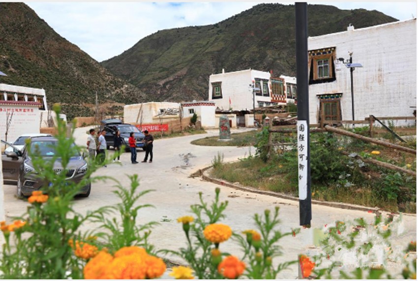 在洞松鄉(xiāng)卡心壩子,只見硬化道路寬敞整潔,29座白色藏房在藍天白云的映襯下顯得格外耀眼,庭院花果飄香,平坦的村道旁垂柳、雪松、桂花等樹種成片成蔭,一片祥和。