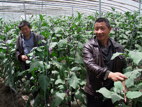 楊利平是咱威村的支部書記,他放棄在冷磧鎮(zhèn)生意紅火的摩托車行,通過盛煌公司的技術(shù)指導(dǎo),他投資30萬元建設(shè)了7個普通蔬菜大棚,請了一名工人幫助管理。“我的錯季蔬菜已經(jīng)見到效益了,四季豆批發(fā)價每市斤就是4.5元。青椒、茄子也即將上市。如果按照傳統(tǒng)種植,這些蔬菜起碼要等到7、8月份。”楊利平高興地說,多虧了盛煌公司的技術(shù)指導(dǎo),有什么不懂的,他可以隨時過來請教。公司從種苗到管理都會向他提供全程服務(wù)。