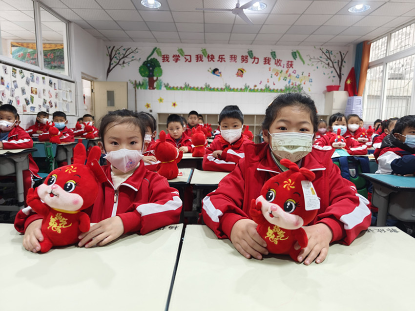記者注意到,整個(gè)校園及各班教室都布置了精美的迎新文化墻,上面張貼懸掛著學(xué)生們?cè)诤偕钪兄谱鞯闹黝}創(chuàng)意海報(bào)。教室內(nèi),每張課桌上不僅插著寫滿祝福語(yǔ)的彩色氣球,還擺放著用紅絲帶打包好的新課本或一套精美文具或一只兔子玩偶,亦或是棒棒糖、旺仔牛奶等零食,均寓意新學(xué)期大吉大利、越來(lái)越棒、大展鴻“兔”、“兔”飛猛進(jìn)。“這些別出心裁的小禮物,能給孩子們留下一個(gè)美好的記憶點(diǎn),在給學(xué)生們帶來(lái)驚喜的同時(shí),也送上一份最美、最真摯的新學(xué)期祝福!”教師黃宇虹說(shuō)。