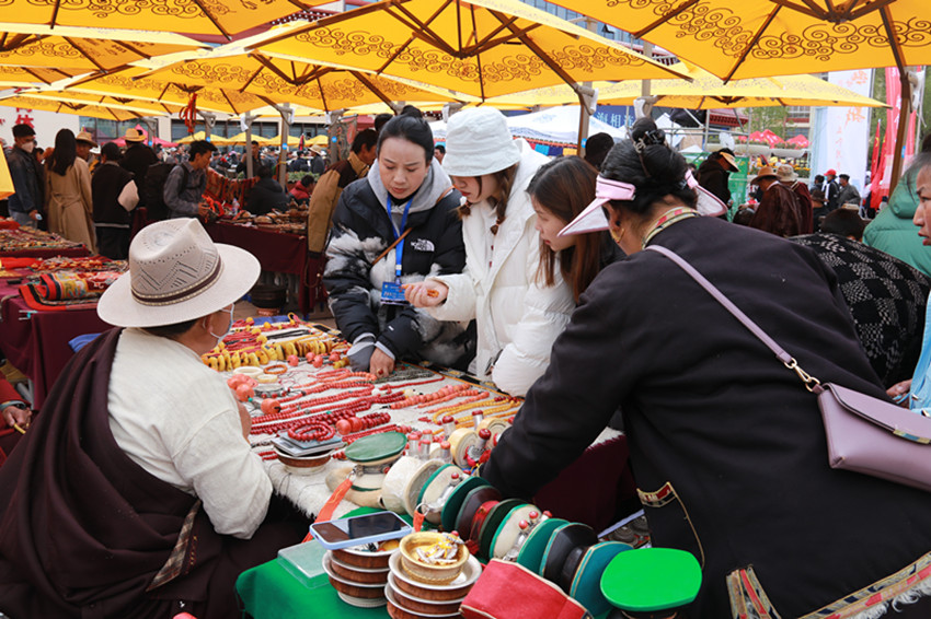 “這個銅鍋?zhàn)畹投嗌倌艹??”“這個藏刀上面的珠子是真的么?”……整整一天,羅布林廣場門庭若市、人聲鼎沸,詢問聲、報(bào)價聲、討價聲充斥在市集各個角落。來自甘肅省甘南州卓尼縣的商人嘎藏在古玩交易博覽活動展覽兩日,就達(dá)成26萬元的交易額。據(jù)他介紹,從受邀參加活動到現(xiàn)場展示,都有當(dāng)?shù)毓ぷ魅藛T聯(lián)系對接,不僅免費(fèi)提供展位,還有公安干警現(xiàn)場維護(hù)安全和秩序,更有當(dāng)?shù)卣刻焖蛠砦绮?、晚餐和飲用水,參加此次古玩交易博覽活動很安心、舒心和放心。