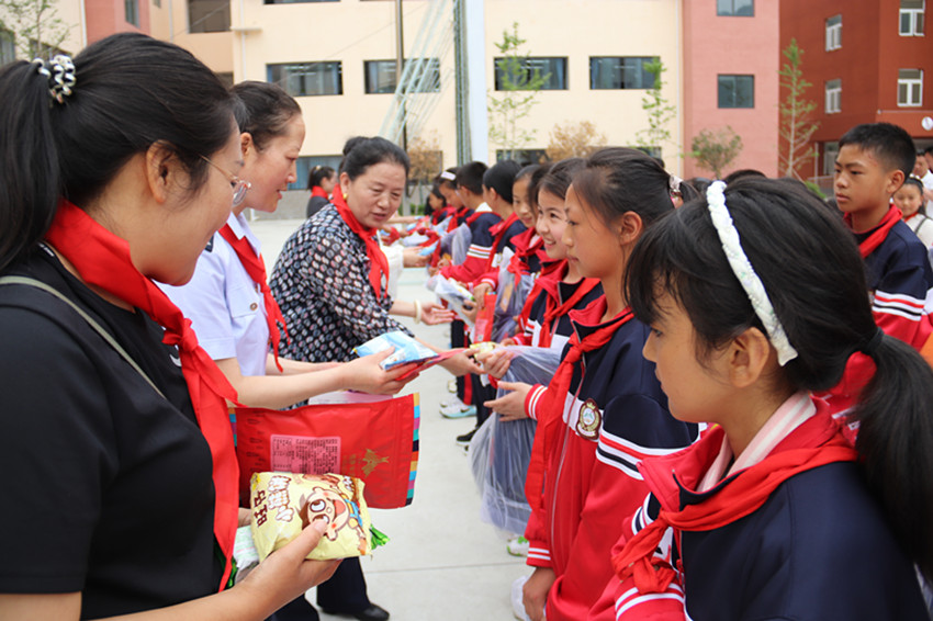 孩子們被節(jié)日前滿(mǎn)載愛(ài)心的禮物和祝福感動(dòng),他們?yōu)槲繂?wèn)組的叔叔阿姨戴上鮮艷的紅領(lǐng)巾,小手牽大手留下美好感動(dòng)的時(shí)刻。