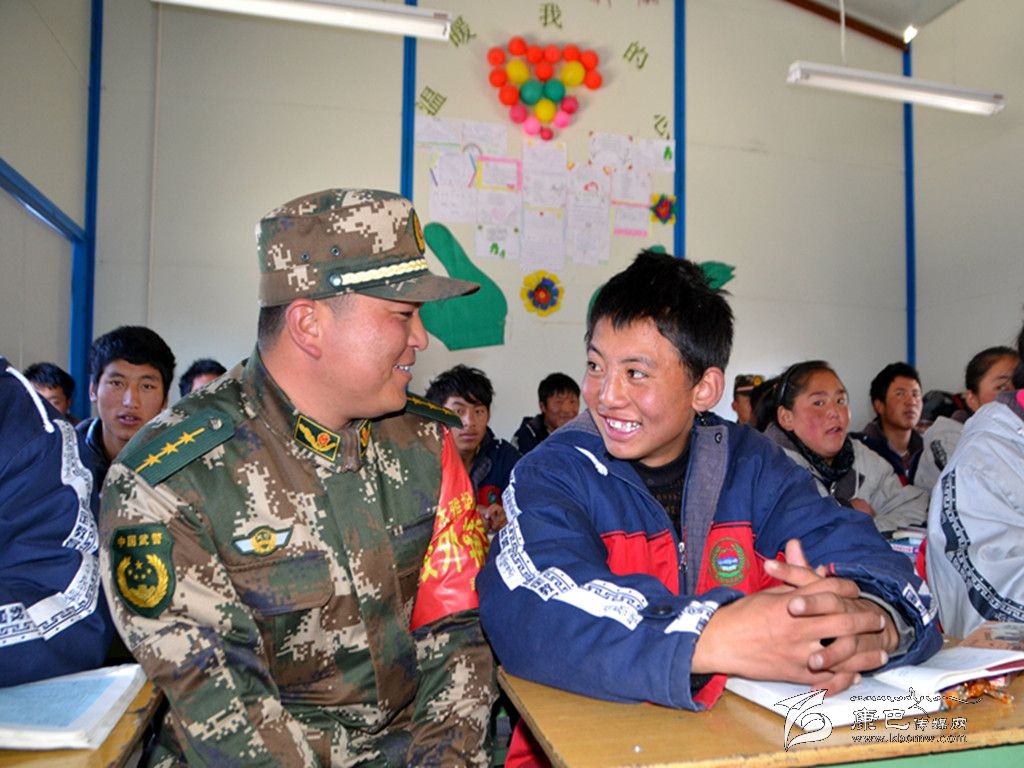 為使康定“11.22”地震災(zāi)區(qū)學(xué)生盡快走出心理陰影,樹立勇敢面對災(zāi)難的信心,連日來,武警四川總隊(duì)二支隊(duì)抗震救災(zāi)官兵主動(dòng)與木雅祖慶學(xué)校對接,擔(dān)負(fù)起該校的“校外輔導(dǎo)員”職責(zé),主要在學(xué)生中開展愛國教育、軍訓(xùn)、心理輔導(dǎo)和一對一功課輔導(dǎo)等活動(dòng)。圖為12月10日上午,武警官兵利用學(xué)生自習(xí)時(shí)間和學(xué)生們開展活動(dòng)。(于傳濤 攝影報(bào)道)