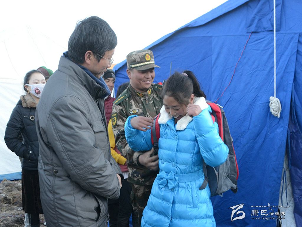 由于受此次地震影響,西康福利學(xué)校的孩子們已經(jīng)放假回到親戚家寄宿。塔公救災(zāi)一線的官兵們利用休息時(shí)間,向胡忠仔細(xì)打聽(tīng)5個(gè)孤兒的身高和臨時(shí)住址,大家主動(dòng)集資專門(mén)采購(gòu)了羽絨服、書(shū)包、文具和米面油等物資。10日下午,官兵們?cè)谖骺蹈@麑W(xué)校老師的陪同下,驅(qū)車百余公里,先后深入到塔公鎮(zhèn)江巴村、多拉一村、各日馬村、下馬龍村和朋布西鄉(xiāng)奪讓村,跨河溝、爬山坡,鉆帳篷、進(jìn)板房,提著新買的衣服、書(shū)包,扛著米面,逐一走訪這些孤兒所寄宿的家,勉勵(lì)他們?cè)诶Ь持凶詮?qiáng)不息,努力學(xué)習(xí),為自己的夢(mèng)想而頑強(qiáng)拼搏,并與孤兒所寄宿的親戚細(xì)心溝通交流,囑咐他們照顧好可憐的孩子,有困難找武警,大家齊心協(xié)力為孤兒創(chuàng)造一個(gè)溫暖的家,為孤兒的成長(zhǎng)成才盡最大的努力。