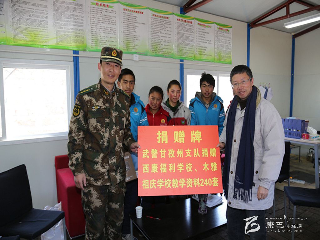 在康定縣西康福利學(xué)校、木雅祖慶學(xué)校臨時(shí)活動(dòng)板房教學(xué)區(qū)校長(zhǎng)辦公室內(nèi),該支隊(duì)向兩所學(xué)校捐贈(zèng)了240套教學(xué)資料,并為5名結(jié)對(duì)特困學(xué)生贈(zèng)送了保暖衣。據(jù)該支隊(duì)副政委朱平孝介紹,康定“11·22”地震發(fā)生后,他們了解到兩所學(xué)校的學(xué)生全在活動(dòng)板房上課后,立即與學(xué)校取得聯(lián)系,結(jié)合實(shí)際給他們訂購了240套教學(xué)資料,用于充實(shí)學(xué)校教學(xué)。并結(jié)合部隊(duì)擔(dān)負(fù)任務(wù)和學(xué)校教學(xué)實(shí)際,將持續(xù)與學(xué)校開展愛心幫扶、國(guó)防教育、支教助學(xué)等共建共育活動(dòng)。
