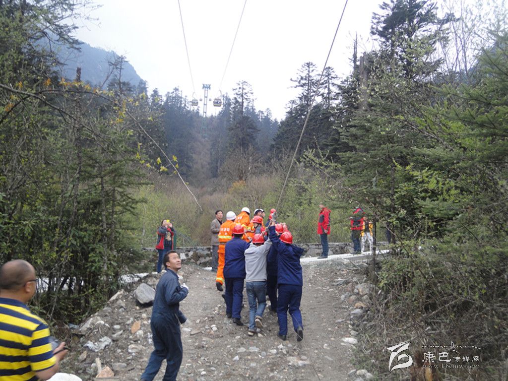 應(yīng)急演練活動(dòng)是模擬索道發(fā)生脫索故障,開展人工救護(hù)應(yīng)急訓(xùn)練。在演練活動(dòng)中,海螺溝客運(yùn)索道出現(xiàn)故障不能運(yùn)轉(zhuǎn),在1C支架和2#支架之間,兩個(gè)車廂共有三名游客滯留空中。海螺溝旅游索道公司立即啟動(dòng)應(yīng)急預(yù)案,救護(hù)總指揮下達(dá)救援指令。后勤組成員對(duì)著車廂喊話,穩(wěn)定游客情緒。救護(hù)小組全體人員,安全、有序、迅速到達(dá)各自崗位,地面工作人員與空中救援人員相互配合,同時(shí)密切注意被困乘客的安全情況,正確操作各項(xiàng)程序,僅用半個(gè)小時(shí)就將被困乘客送到地面,安全完成營救。地面輔助救護(hù)人員立即對(duì)被營救人員進(jìn)行現(xiàn)場(chǎng)檢查和救治,保障了被營救人員的生命安全,應(yīng)急演練活動(dòng)圓滿完成。