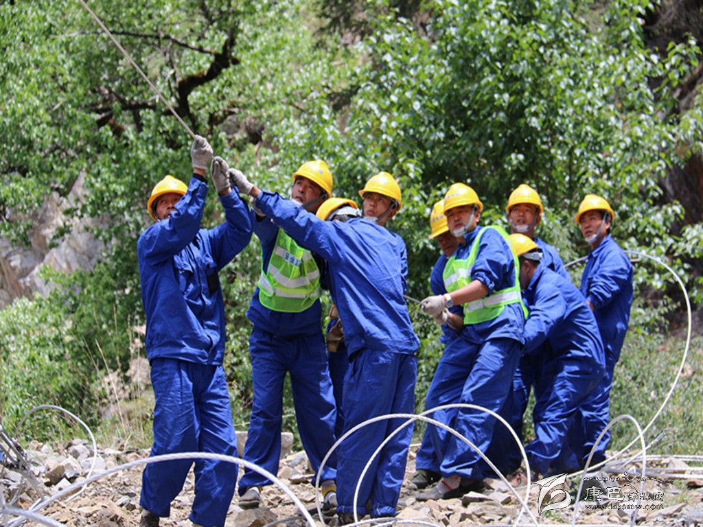 “辛苦”二字同樣印在工程管理者的工作中。手握對講機(jī)、身穿工裝的工程項(xiàng)目負(fù)責(zé)人龍森,此刻正頂著烈日在工地對一位工人叮囑施工事項(xiàng)。龍森是甘孜電力建設(shè)有限公司的工程技術(shù)人員,他對工程管理非常嚴(yán)格,如果工程進(jìn)度稍慢點(diǎn),他就會焦急萬分??擅棵靠匆姽と藗冺斨胰?、冒著風(fēng)雨加班加點(diǎn)趕工程進(jìn)度時(shí),龍森的心里也特別不是滋味。對這項(xiàng)工程的不易龍森深有體會。架桿初期,有些路段山坡土質(zhì)松軟,一遇到下雨就容易滑坡塌方,為了不影響工程進(jìn)度,龍森和工友們常常要一邊做“修路工”的工作一邊做“架桿工”的工作。龍森說:“最苦的是,這里有些路段車輛根本無法進(jìn)入,一根電桿重1.2噸,要靠十多名工人用繩索和木頭抬進(jìn)工地。德差鄉(xiāng)距離縣上有170多公里,單程就要4小時(shí),工程緊的時(shí)候一周要往返縣上兩三趟。還記得有一次車胎在海拔近5000米的呷布科山上爆了,山上手機(jī)沒有信號,得不到救援,餓了我們就在山上吃點(diǎn)自帶的干糧,等了近半天才等到一位騎摩托車的老鄉(xiāng)路過,回到休息地的時(shí)候已經(jīng)是半夜兩點(diǎn)多了。”說到這里,龍森無奈地?fù)u了搖頭。世上無難事,只怕有心人。龍森說,這段路線的電桿已經(jīng)全部立起來了,現(xiàn)在只剩下架線的工作。一定要搶在月底之前為這兩個(gè)村通上電。