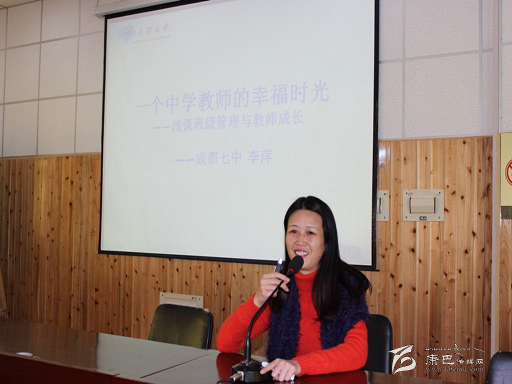 活動中,成都七中網(wǎng)校教師分別與康定中學(xué)網(wǎng)課班(云班)教師、學(xué)生開展了交流、觀摩教學(xué)等活動。成都七中優(yōu)秀政治教師、班主任李萍還為全校教師作了一堂題為《一個中學(xué)教師的幸福時光──淺談班級管理與教師成長》的專題講座。講座中,李萍老師以米歇爾訪問七中以及旅美感受為楔子,結(jié)合自己的教育經(jīng)驗、親身經(jīng)歷、人生閱歷、工作所得,對班級管理及教師成長進行了深入淺出的詮釋,讓全體聽課教師普遍感覺受益非淺。
