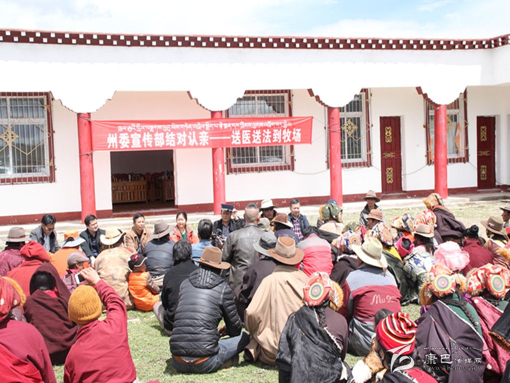起塢鄉(xiāng)格托二村的牧民群眾都還在蟲草采集點,但得知州委宣傳部的親戚們要到村上來送醫(yī)送藥、送法律,牧民群眾們奔走相告,大家相繼趕到村級活動室外,熱情地與工作組握手問好,圍坐在草地上聽工作組為大家宣講法律法規(guī)、惠民政策等相關知識。