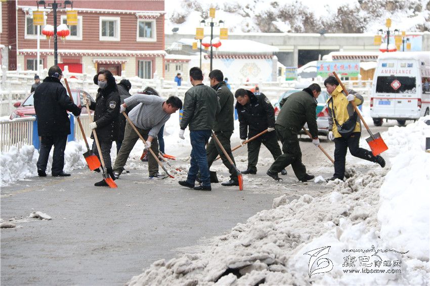 從22日上午起,記者在康定城區(qū)大街小巷看到,駐州部隊(duì)官兵以及部分單位職工緊急行動(dòng)起來(lái),清掃積雪。根據(jù)州委、州政府的安排,州直屬機(jī)關(guān)工委也于22日向州級(jí)部門(mén)、省屬單位各基層黨組織發(fā)出緊急通知,并逐一劃分責(zé)任片區(qū),組織干部職工集中清理辦公區(qū)、住宿區(qū)、街道積雪,確保道路安全暢通。 按照劃分的責(zé)任片區(qū),州級(jí)機(jī)關(guān)行動(dòng)迅速,到處可以看見(jiàn)干部職工揮動(dòng)鐵鏟除雪的忙碌身影。23日上午10點(diǎn)過(guò),記者看到從藏族小學(xué)到州委黨校的路段上,州委黨校和州檔案局的干部職工正在清除積雪。“大雪影響了這段路上居民的出行,積雪很深,給清掃帶來(lái)極大困難。州直機(jī)關(guān)工委號(hào)召機(jī)關(guān)單位干部職工積極行動(dòng)起來(lái)清理積雪,這是與人方便,也是與自己方便。積雪清掃干凈后,走在路上不需要擔(dān)心被滑倒。”州委黨校教師扎西說(shuō)。