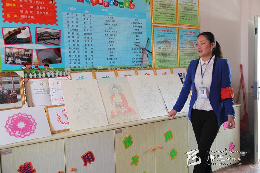 在少年宮作品陳列室,一幅幅精美的唐卡、剪紙、國(guó)畫(huà)、藏文書(shū)法作品和自制的手工藝品吸引了記者的目光。線(xiàn)條流暢的唐卡、生動(dòng)的剪紙、遒勁的書(shū)法,讓這個(gè)小小的陳列室充滿(mǎn)了濃濃的“文化味”。