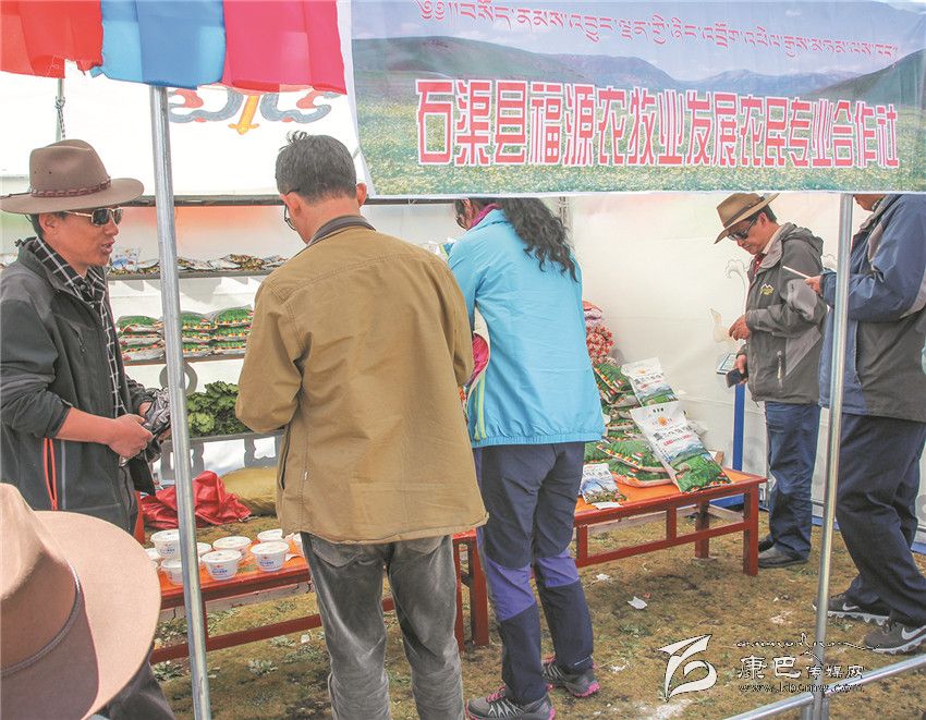 8月3日是石渠縣帳篷節(jié)的最后一天,清晨的陽光透過炊煙傾灑在草原千余頂帳篷上,40多歲的藏族漢子嘎戎從生活區(qū)的帳篷里出來,走向不遠(yuǎn)的太陽部落帳篷商貿(mào)城集市。那里安扎著400多頂帳篷,有商戶370家,周邊還有50多個流動的小商販。嘎戎所在的石渠縣福源農(nóng)牧業(yè)發(fā)展農(nóng)民合作社就是其中的一家參展商。從帳篷節(jié)開始,嘎戎就和其它5個人輪流值守這個他們倍加珍惜的展位,那是他們合作社自今年4月份成立至今第一次在如此重大的場合中露面,經(jīng)過這次檢驗(yàn),他們對自己的產(chǎn)品更加有信心。駐真達(dá)村第一書記祝修濤告訴記者,短短一個星期,合作社展售的糌粑、人參果、奶渣近2000斤,銷售額達(dá)4萬多元。這個農(nóng)民專業(yè)合作社以扶貧為己任,從建設(shè)種植基地到水磨房加工投入了200多萬元,全村50戶村民參與,合作社將原料統(tǒng)一發(fā)給村民加工,再統(tǒng)一收起來,統(tǒng)一包裝銷售。祝修濤說,社里的產(chǎn)品剛開始只是在當(dāng)?shù)爻鍪郏m然投入大但產(chǎn)量不敢做大,這次有這個平臺得到了市場的認(rèn)可,他們對合作社的發(fā)展充滿了信心。祝修濤,作為該村的第一書記,他要帶領(lǐng)著這個合作社好好規(guī)劃、大干一場。