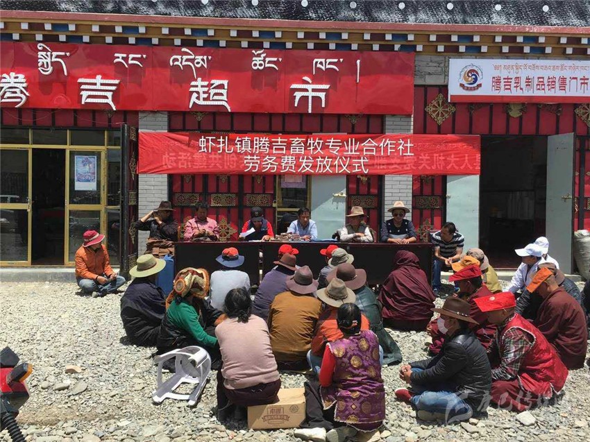 “精準扶貧”貴在“精準”,精確找準“貧困癥結”,準確“對癥下藥”;由于塔須村惡劣的自然環(huán)境制約,村民們還過著古老傳統(tǒng)的游牧生活,導致塔須村社會、經濟、文化發(fā)展相對滯后,全村無集體經濟產業(yè),屬于我州貧困村中的“貧中之貧”,以往傳統(tǒng)的扶貧措施猶如“灑胡椒面”,治標不治本;“授人以魚,不如授人以漁”,為讓塔須村能建立村集體產業(yè),村民們能掌握一門致富手藝,州水務局結合塔須村實際,多次派遣工作組深入塔須村,了解貧困戶生活現(xiàn)狀、致富愿望,聽取村兩委干部建言,形成專題脫貧報告;鑒于牧民致富愿望強烈,村干部建言獻策,在州水務局的積極協(xié)調下,在蝦扎鎮(zhèn)黨委、政府的倡導下,經石渠縣人大牽頭,通過州級各聯(lián)系單位、駐村幫扶工作組和村兩委的努力,整合各方人力、物力、財力,團結協(xié)作,于2016年3月成立了“石渠縣蝦扎騰吉畜牧專業(yè)合作社”,并選舉出9名致富能手為騰吉專業(yè)合作社理事人選。“騰吉合作”乃飛騰吉祥之意,寓意著牧民群眾齊心協(xié)力,共奔小康。