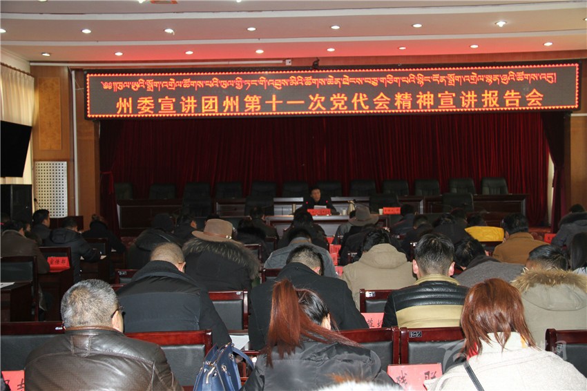 本網(wǎng)訊(葉強(qiáng)平 文/圖)1月16日,州委宣講團(tuán)宣講員、州委統(tǒng)戰(zhàn)部常務(wù)副部長昌呷次稱一行在理塘縣宣講州第十一次黨代會(huì)精神。該縣副縣級以上領(lǐng)導(dǎo),各片區(qū)、鄉(xiāng)鎮(zhèn)、縣級機(jī)關(guān)單位負(fù)責(zé)人及部分農(nóng)牧民共200余人聆聽了報(bào)告。