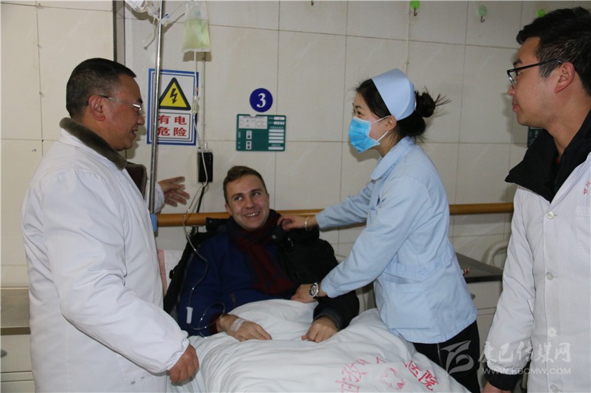 和國醫(yī)生正在給臨床病人檢查病情。一位來康定玩的俄羅斯小伙因患重感冒住進(jìn)了急救中心。正在輸液的他用比較熟練的中文激動(dòng)地告訴記者:“這里的醫(yī)生服務(wù)很好,他們過年都沒有休息,我得了重感冒,經(jīng)過治療以及在他們的細(xì)心關(guān)照下,我的病情好多了?!?/span>