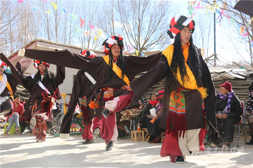 演出現(xiàn)場,80歲的澤則瑪高興地說:“我們一直都是從電視上觀看全國各地舉辦的新春文藝表演,沒想到今年春節(jié)我們小小的一個村子也有了自己的舞臺?!贝竽瓿跻唬迕駛冊缭绯赃^飯,穿上表演服在村級文化活動室等待10點鐘正式演出,活動室外的觀眾們正翹首以盼。伴隨著歡快的歌舞聲響起演員們翩翩起舞,為村子增添了節(jié)日的歡樂。