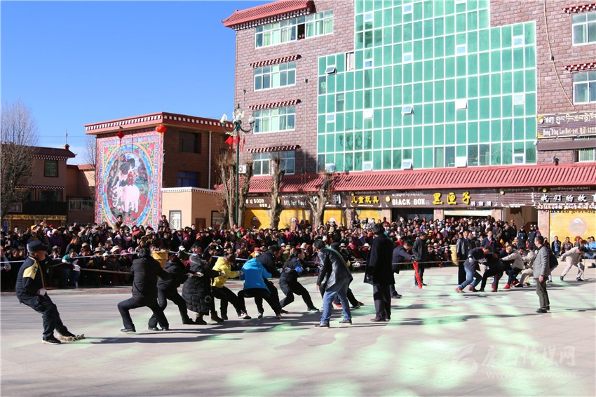 理塘縣干部群眾拔河比賽現(xiàn)場。