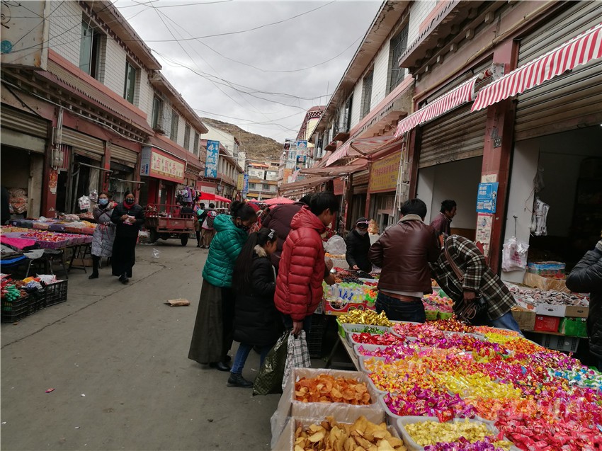筆者在該縣副食店、超市看到,商家的各種促銷優(yōu)惠活動,吸引了不少農牧民群眾,前來購買年貨的群眾熙熙攘攘。各種涼鹵食品店的生意也相當火爆。“快過年了,吃的、用的和穿的都得買點,過完藏歷年,就要忙春耕生產了?!笔掷锪嘀蟀“曦浀慕荡霛M臉喜悅地說。