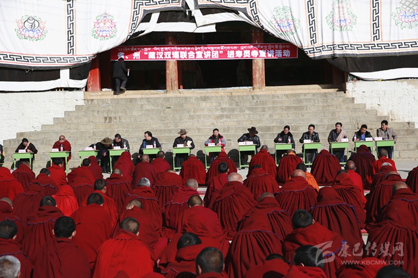 省、州藏漢雙語聯(lián)合宣傳團(tuán)進(jìn)寺廟開展法治宣講。 本報資料圖