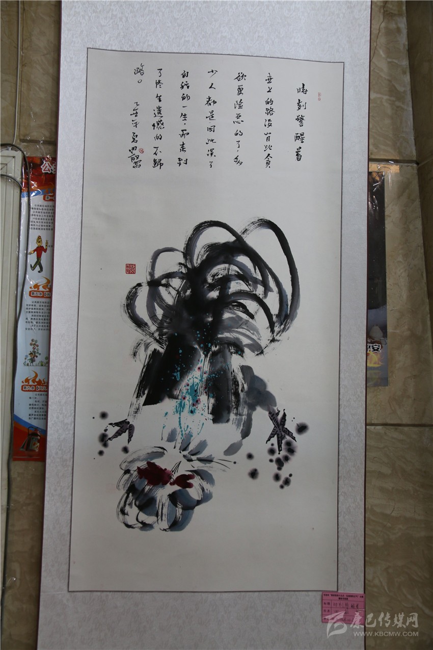 “‘松潔鶴鳴’是我親筆所繪,畫中‘松潔’表現(xiàn)的是黨員干部廉潔自律、風(fēng)清氣正的一種政治生態(tài)環(huán)境;‘鶴鳴’表現(xiàn)的是警鐘長(zhǎng)鳴,時(shí)時(shí)刻刻向黨員干部敲敲‘鐘’。”州老年大學(xué)書法班今年70歲的胡鄧珠指作書畫作品興奮地說。