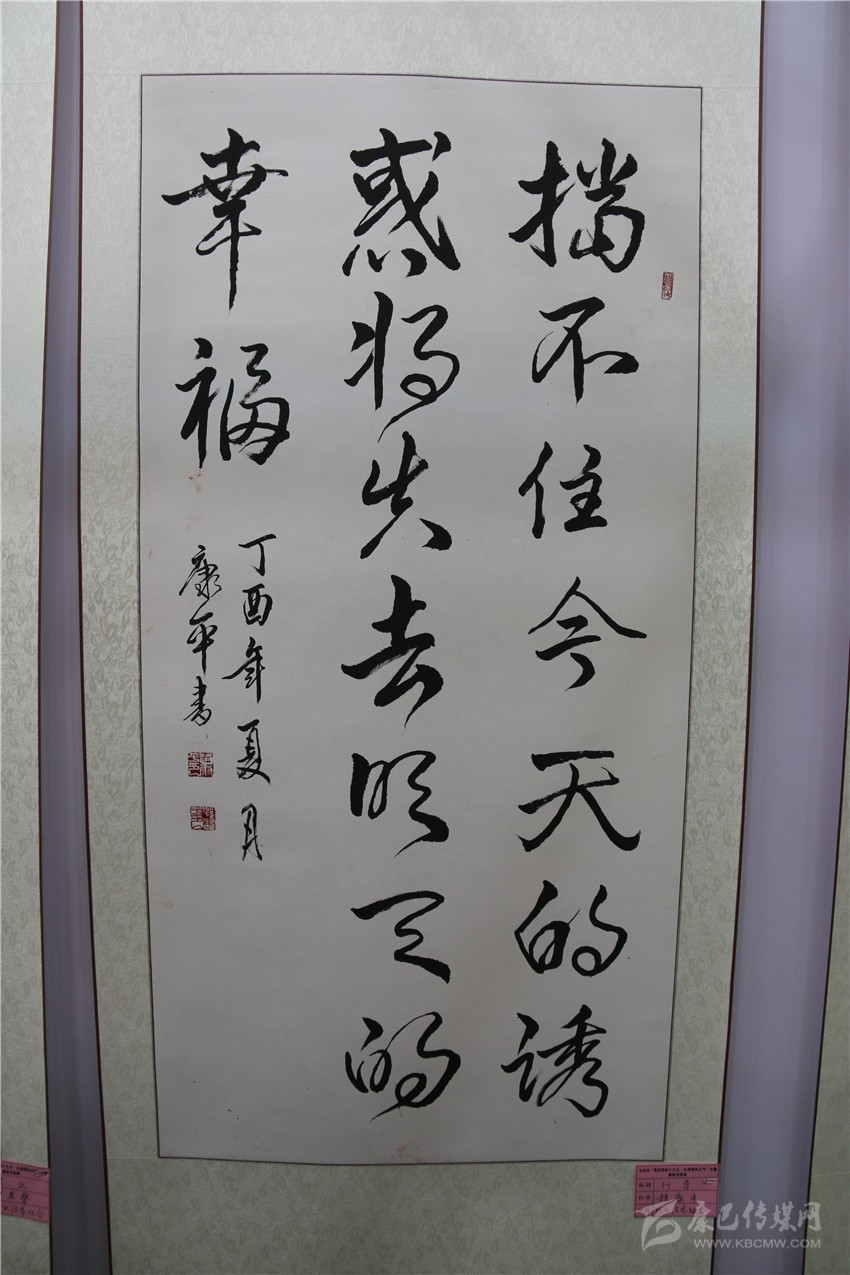 本網(wǎng)訊(記者 宋志勇 文/圖)“儉修德,善養(yǎng)心;公生明,廉正身?!薄爱?dāng)不住今天的誘惑將失去明天的幸福?!薄扒辶?/span>..........。隸書、行草、草書等一幅幅書法作品行云流水、飛揚(yáng)灑脫。這是9月15日,由州紀(jì)委、州委宣傳部共同主辦,州直工委、州文明辦協(xié)辦的我州“喜迎黨的十九大?弘揚(yáng)清風(fēng)正氣”主題廉政書畫展在康定劇場(chǎng)開展時(shí),參與此次活動(dòng)的作者以各自的方式創(chuàng)作出一件件主題鮮明的精美力作,既增強(qiáng)全社會(huì)反腐倡廉意識(shí),也營(yíng)造各族人民喜迎黨的十九大的濃厚氛圍。
