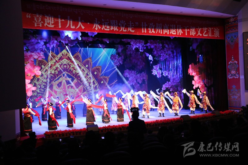 本網(wǎng)訊(記者 宋志勇 文/圖)9月29日,由州委、州政府主辦,州委組織部、州委老干部局、州文體廣新局承辦的“喜迎十九大、永遠(yuǎn)跟黨走”全州離退休干部文藝匯演在康定劇場舉行,旨在謳歌黨在藏區(qū)的豐功偉績,頌揚(yáng)甘孜兒女今天的幸福生活。州級退休老領(lǐng)導(dǎo)胡克禮、吞珠、寧紹武、便巴傾批、李明璽、何濤、李其福、郭昌平以及州委老干部工作領(lǐng)導(dǎo)小組成員單位領(lǐng)導(dǎo)和相關(guān)部門領(lǐng)導(dǎo)出席并參加活動。州委常委、宣傳部長相洛出席活動并致辭,省委老干部局副局長史可,州人大常委會副主任白蘇英、州政府副州長鄭天強(qiáng)、州政協(xié)副主席陳洪暴和特邀嘉賓涼山州委組織部副部長、老干局局長楊國敏出席并觀看演出。