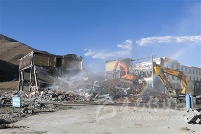 康定市新都橋鎮(zhèn)拆違現(xiàn)場。