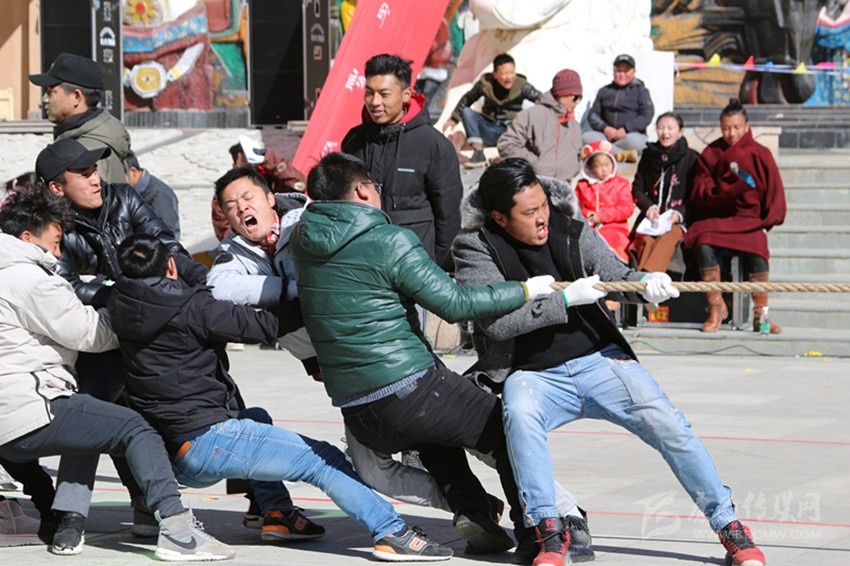 趣味比賽將干部職工和高城鎮(zhèn)農(nóng)牧民群眾分成若干個小組進(jìn)行比賽,“翻山越嶺 ”游戲,男生普遍輕松應(yīng)對,女生由于沒有助跑,一直栽在“山坡上”翻不過去,引得現(xiàn)場觀眾大笑,最后在現(xiàn)場觀眾的齊聲加油下終于翻過。跳繩、袋鼠跳,參賽選手較勁比拼?!坝赂艺摺庇螒颍M員需先轉(zhuǎn)10個呼啦圈、踢毽10下、吹爆一個氣球、跳繩10下、喝完一瓶330毫升的礦泉水進(jìn)行接力,現(xiàn)場氣氛熱烈,觀眾的加油吶喊聲此起彼伏。“坦克大戰(zhàn)”游戲考驗(yàn)了大家協(xié)調(diào)配合能力,把觀眾的心都提到嗓子眼。最引人注目的拔河比賽開始了,每個隊(duì)都帶著勢在必得的勇氣上場,結(jié)果年輕小伙們卻輸給了高城鎮(zhèn)農(nóng)牧民代表隊(duì)。