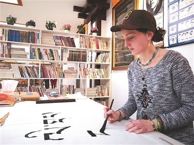 25歲的法國(guó)女孩寶林(中文名),環(huán)亞洲旅行剛到中國(guó)沒(méi)多久,在成都待了一星期后,想更多地探索藏文化的奧秘,于是來(lái)到理塘。在這個(gè)城市的任何角落都能感受到藏文化氣息的她,通過(guò)三完小藏族教師益西的介紹,4月19日來(lái)到理塘縣電子商務(wù)雙創(chuàng)孵化中心“扎納民族文化傳承基地”參觀,看到藏文書法那么美麗,就動(dòng)了參加“民族書法免費(fèi)培訓(xùn)班”的念頭。