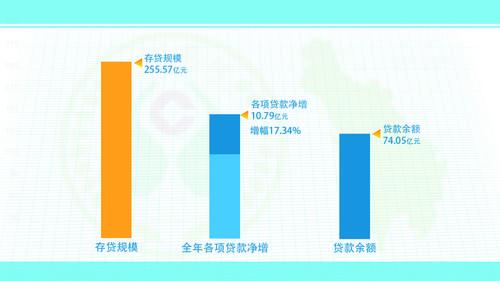 ——存貸規(guī)模高速增長。截至2017年末,甘孜農信存貸規(guī)模255.57億元,全年各項存款凈增21.71億元,增幅13.59%,位居全州銀行業(yè)金融機構第一位,余額達到181.52億元,服務地方經濟的實力進一步增強;各項貸款凈增10.79億元,增幅17.34%,余額達到74.05億元,有力支持了經濟社會發(fā)展。