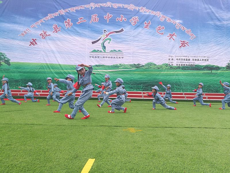 近年來(lái),甘孜縣從造就一代新人的高度出發(fā),注重藝體教育,加強(qiáng)藝術(shù)教育師資隊(duì)伍建設(shè),充分發(fā)揮藝術(shù)教育的育人作用,形成了百花齊放、各領(lǐng)風(fēng)騷的學(xué)校教育新局面。各種形式的藝術(shù)活動(dòng)的開(kāi)展,營(yíng)造了藝術(shù)教育的良好氛圍,豐富了師生的課余生活,使學(xué)校涌現(xiàn)出大批優(yōu)秀藝術(shù)人才。