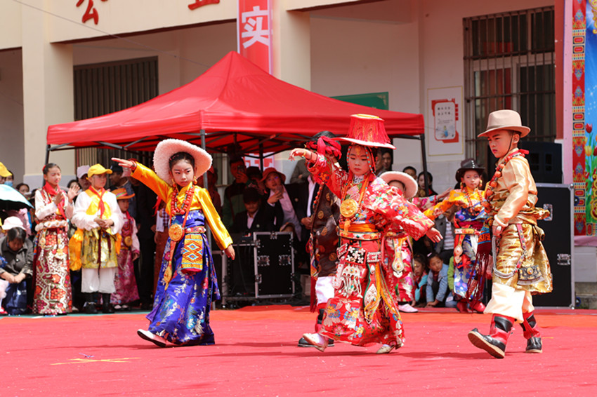 當(dāng)天,藝術(shù)展演在百人大合唱中拉開(kāi)帷幕。舞蹈《紅孩子》傳承紅色精神;校園劇《臉譜》展現(xiàn)了中華藝術(shù)瑰寶京劇的魅力;舞蹈《籃球?qū)氊悺反蚱苽鹘y(tǒng)體操舞蹈編排,將幼兒體操和花樣籃球相結(jié)合,動(dòng)感十足;《藏民族服飾表演》絢麗多彩極具魅力;音樂(lè)情景劇《老師媽媽、媽媽老師》催人淚下?!堆┯驓g歌》《趣味對(duì)唱》《吉祥筷子舞》等33個(gè)節(jié)目輪番上演,完美地呈現(xiàn)了甘孜縣各學(xué)校在教育發(fā)展過(guò)程中發(fā)生的巨大變化,充分展示了全縣中小學(xué)生朝氣蓬勃、積極向上的精神面貌,讓現(xiàn)場(chǎng)觀眾享受了一場(chǎng)與眾不同的視聽(tīng)盛宴。縣委中心報(bào)道組 余應(yīng)瓊 劉炳科 文/圖