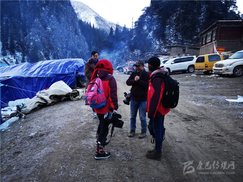 11月6日晚,甘孜日?qǐng)?bào)記者馬建華、張磊、余秋林和州廣播電視臺(tái)副臺(tái)長(zhǎng)何良忠、記者洛嘎、肯布及白玉電視臺(tái)記者連夜趕赴則巴村中轉(zhuǎn)站。26公里的崎嶇山路,冰雪道危險(xiǎn)重重,坡陡彎急,司機(jī)憑借經(jīng)驗(yàn)在坡度60度以上的暗冰道上行駛,經(jīng)過(guò)兩個(gè)多小時(shí)的艱難行進(jìn),采訪組終于入住前方救災(zāi)組搭建的救災(zāi)帳篷。深夜,大雪紛揚(yáng),帳篷里寒氣襲人。帳篷四周,狗叫聲不止,一條狗鉆進(jìn)帳篷,蜷縮在記者床鋪旁邊,因?yàn)樘?,記者們不忍心將它?qū)離。11月7日,白格堰塞湖庫(kù)容量達(dá)到2.71億立方米,白格堰塞湖形勢(shì)嚴(yán)峻,嚴(yán)重威脅我州金沙江下游群眾生命財(cái)產(chǎn)安全。一大早,10多公分厚的大雪扮美了村莊,卻給機(jī)具、救災(zāi)物資、救援人員進(jìn)出等帶來(lái)極大困擾。“我們的挖掘機(jī)司機(jī)在山上被大雪困了一夜,徒步到中轉(zhuǎn)站休息了三個(gè)小時(shí)又到山上去作業(yè)了,你們應(yīng)該去采訪一下?!敝菡敝蓍L(zhǎng)何康林說(shuō)。