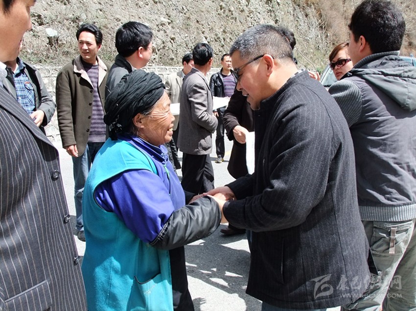 省民委副主任、省民開辦主任肖曉軍調研兩資民生工程與康定市雅拉鄉(xiāng)群眾親切交談。