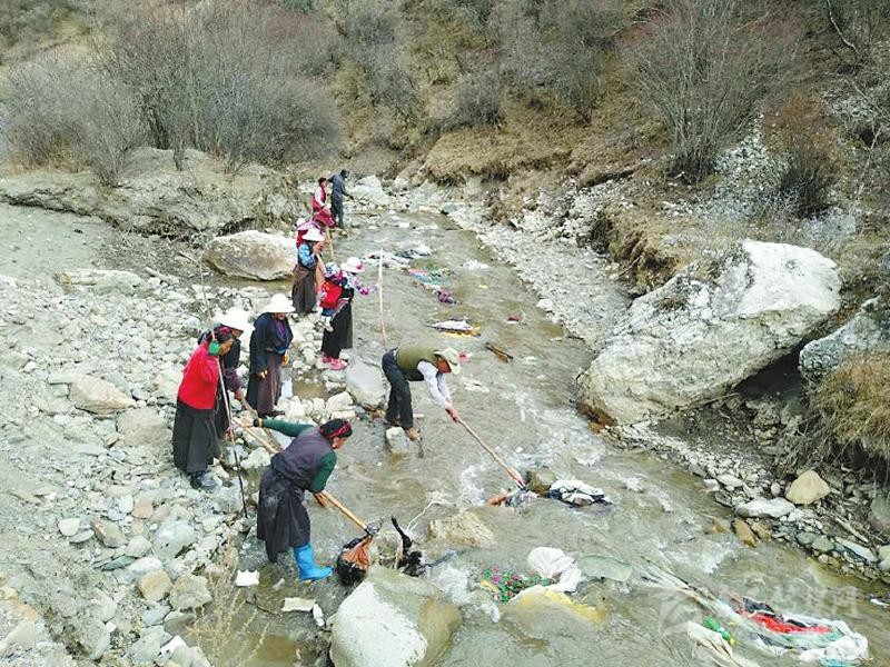 說干就干,黃先明帶領(lǐng)駐村工作隊(duì)隊(duì)員和村兩委班子成員不畏嚴(yán)寒,首先把全村的道路、公共設(shè)施場地進(jìn)行了清掃,把道路兩邊的小土堆全部鏟平并種上花草,把村民房前屋后的柴火、廢料等重新清理并制定擺放標(biāo)準(zhǔn)。在河道整治中,黃先明帶領(lǐng)村干部沖在前面,對不容易清理到的垃圾,還跳到河里去撿。3月的高原還很冷,鞋子很快被交納河水打濕,但大家全然不顧。“黃隊(duì)長都帶頭干,我們更要努力?!苯患{村村民巴登鄧珠說。