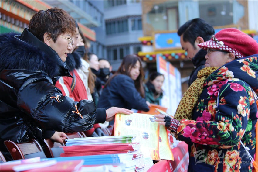 活動現(xiàn)場,工作人員為市民發(fā)放民族團結(jié)進步宣傳品、民族團結(jié)進步藏漢雙語宣傳教育讀本、宣傳畫、宣傳折頁、宣傳掛歷、《中國民族報》甘孜州民族團結(jié)專刊、《民族》雜志甘孜州民族團結(jié)專刊等各類宣傳資料9800余份(本),擺放展板30個。來自丹巴縣的仁真說:”現(xiàn)在的幸福生活離不開偉大的中國共產(chǎn)黨的領(lǐng)導(dǎo),也離不開全國各族人民共同團結(jié)奮斗、共同繁榮發(fā)展?!?/p>