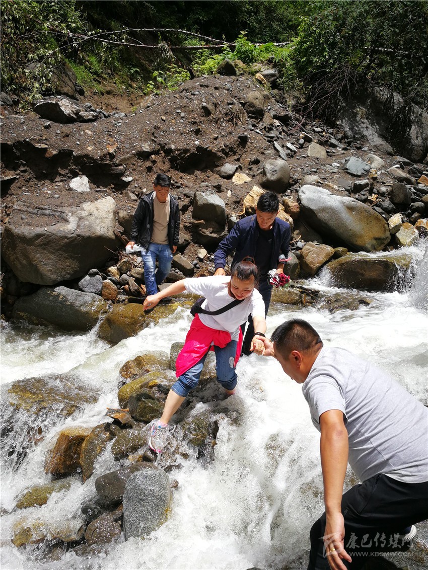 丹巴縣紀(jì)委監(jiān)委干部在半扇門鄉(xiāng)火龍溝三村涉水入村開展督查。 圖片均為州紀(jì)委景蓉提供