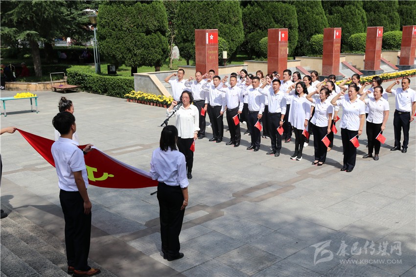 省委政法委、州委政法委與瀘定縣政法委一同開展“不忘初心、牢記使命”主題教育活動,圖為重溫入黨誓詞。