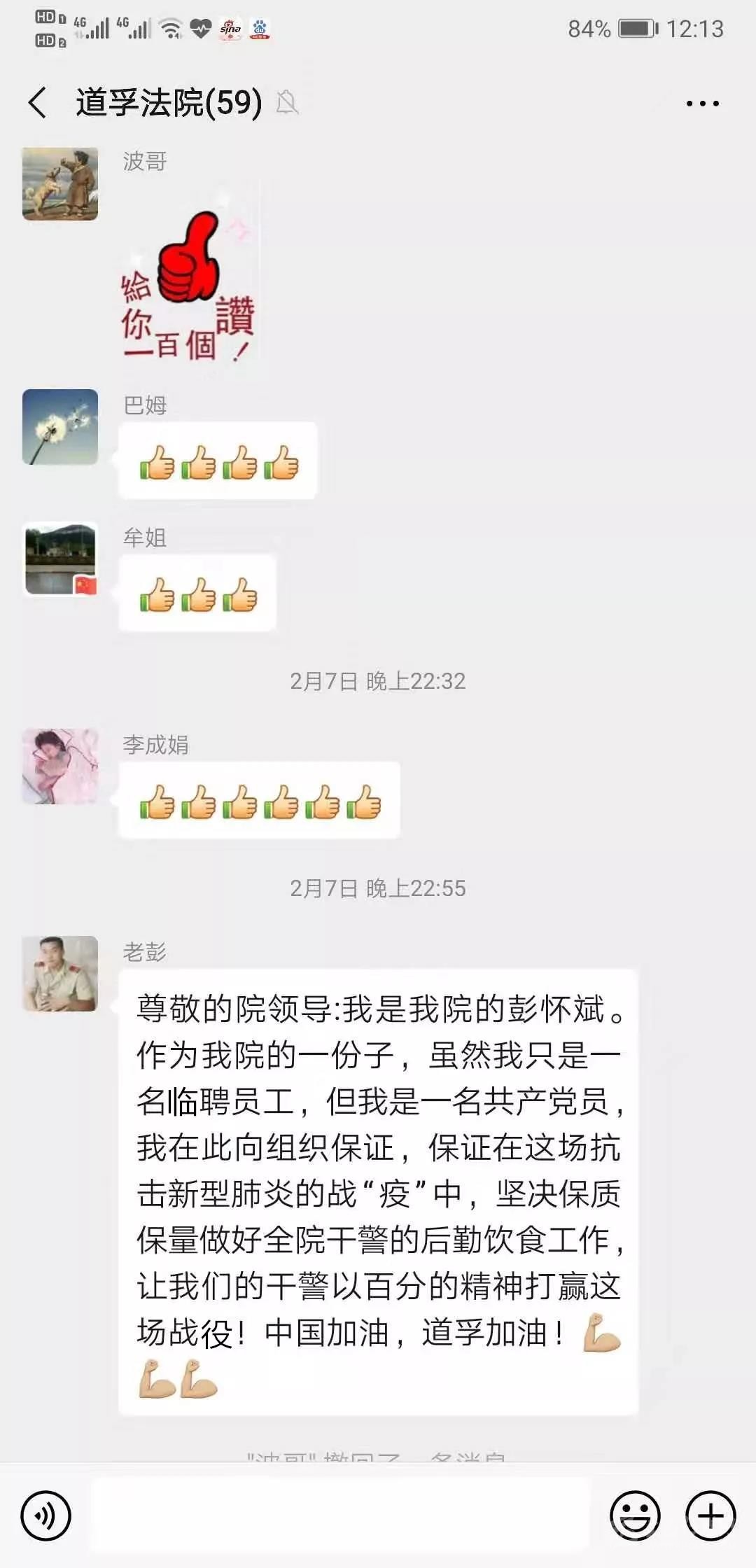 彭懷斌向院黨組作出鄭重承諾:“作為我院的一份子,雖然只是一名臨聘員工,但我是一名共產(chǎn)黨員,我在此向組織保證,保證在這場抗擊新冠肺炎的戰(zhàn)‘疫’中,堅(jiān)決保質(zhì)保量做好全院干警的后勤飲食工作,讓我們的干警以百分的精神打贏這場戰(zhàn)役!中國加油!道孚加油!” 特殊時(shí)期,為了保證食材的絕對(duì)安全,廚房沒有幫手,所有工序都需要他一手一腳完成,任務(wù)有多重可想而知。