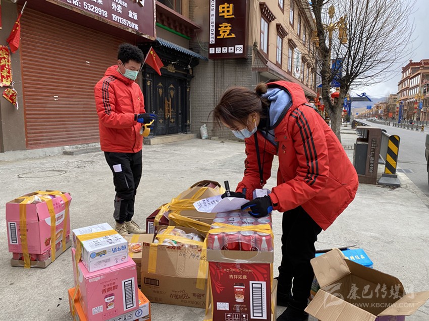 理塘縣志愿者為居民代購(gòu)物資。